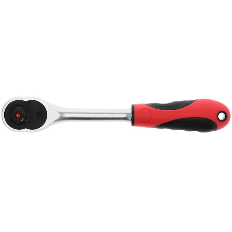 Testa ovale, Impugnatura a 2 componenti, trasmissione della forza gentile per le mani, Per inserti di cricchetti, elementi di collegamento ecc. con attacco quadro secondo DIN 3120 - C 12,5, ISO 1174, con sfera di fermo, Testa ovale, Impugnatura bicomponente, trasmissione delicata della forza, Superficie cromata opaca, Per chiavi a bussola, elementi di collegamento ecc. con attacco quadro a norma DIN 3120 - C 12,5, ISO 1174, con sede fermasfera, Acciaio cromo-vanadio Larghezza totale [mm] 40 mm Peso netto [kg] 0,586 kg Numero di denti 72 Azionamento quadrato [metrico] 12,5 mm Certificato VDE 0 Rilascio del pulsante di stampa 1 Angolo di rotazione del ritorno 5 ° Dimensioni dell'imballaggio 1 Quadrato di azionamento [imperiale] 1/2 Contenuto (numero di pezzi) 1 tlg. Materiale (F) Chrom-Vanadium-Stahl Blocco di sicurezza Kugelfangrille Tipo di commutazione Umschalthebel Altezza totale [mm] 40 mm Paese di origine Taiwan Lunghezza totale 250 mm Materiale della maniglia 2-Komponenten