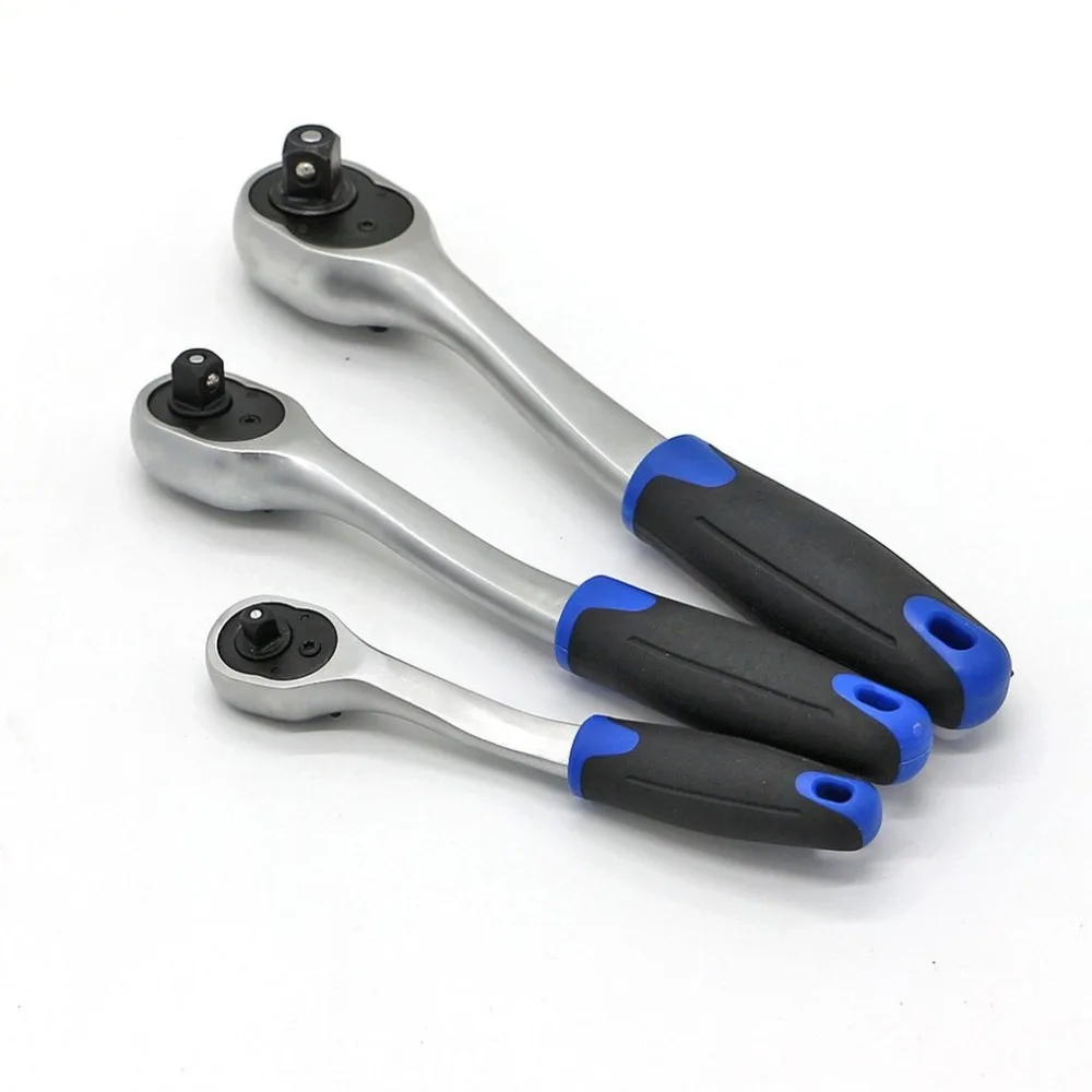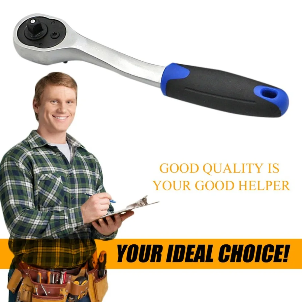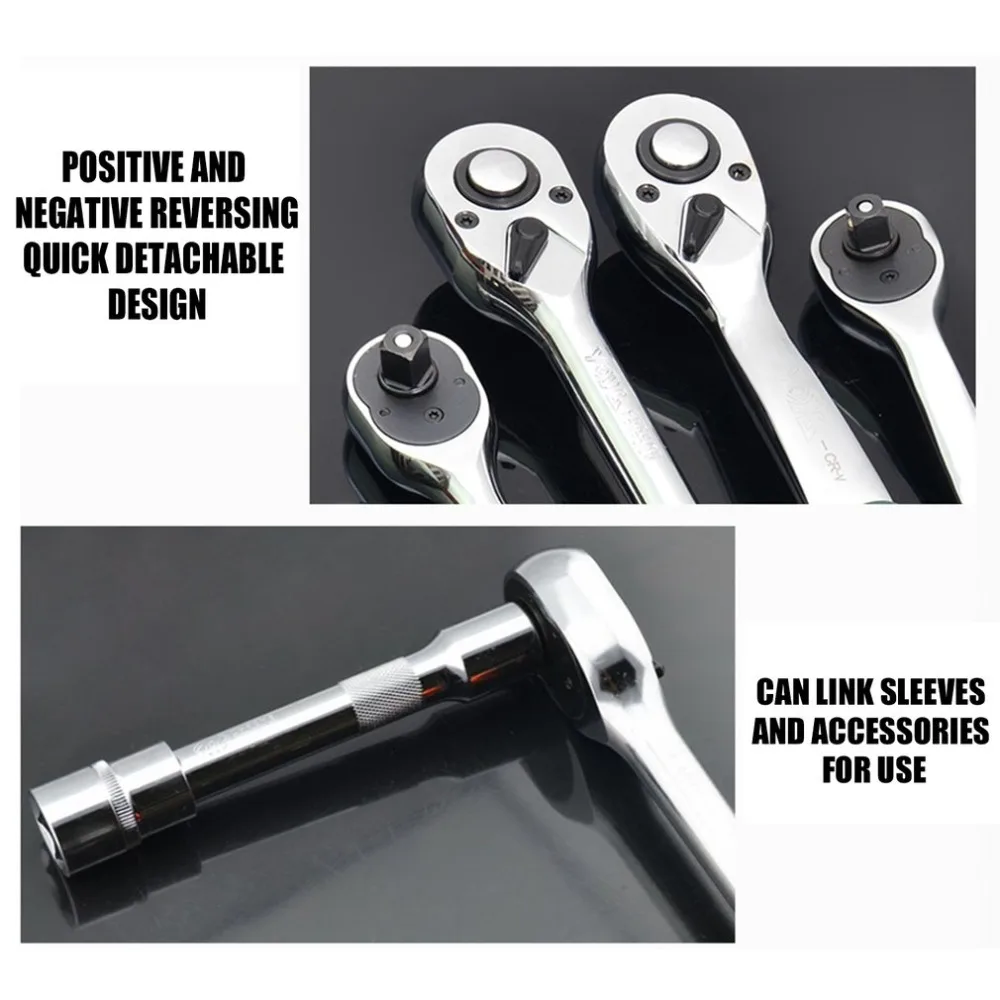 New 1/4" 3/8" 1/2" Ratchet Wrench Quick Release Single-end Chrome Steel Wrench Plastic Handle Professional Repairing Tool