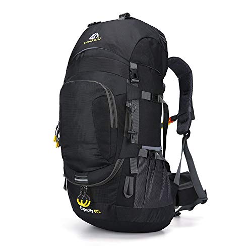 RatenKont Outdoor 50/60L mit Lichtreflexion Wasserdichter Reiserucksack Camping Wandertaschen Rucksack Sport Black 50 70L