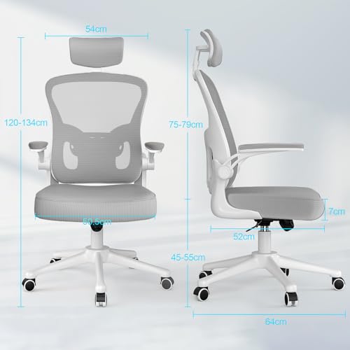 Rattantree Sedia da Ufficio, Sedia Ufficio Scrivania con Poggiatesta Regolabile, Sedia Ergonomica per Computer con Braccioli Regolabili e Supporto Lombare per Home Office, Grigio