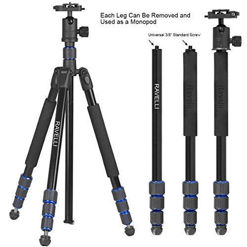 Ravelli APGL5 Treppiede Professionale da cm 165, per videocamera o fotocamera, con testa sferica, piastra d'attacco a sgancio rapido e borsa per trasporto.