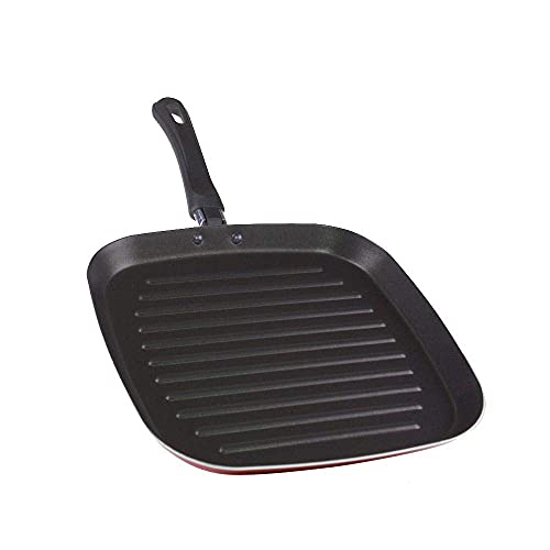 Ravelli Bistecchiera Ondulata Antiaderente in Alluminio 99,5% 28x28 cm Linea 10 - Padella Grill con Manico Rivettato