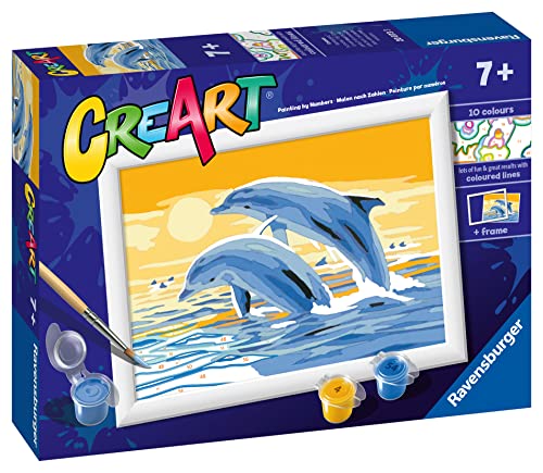 Ravensburger CreArt 200733, Delfini Amici, Dipingere con I Numeri Bambini, Età Raccomandata 7+, Multicolore, 18 x 13 cm