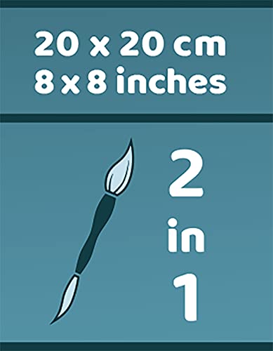Tutto è incluso: 1 tavolo da 20 x 20 cm, 8 barattoli di vernice acrilica richiudibili, 1 doppio pennello, 1 pallet, 1 attacco, 1 modello e 1 vernice lucida. Le vernici acriliche sono inodore, non richiedono alcuna miscelazione e si asciugano rapidamente.