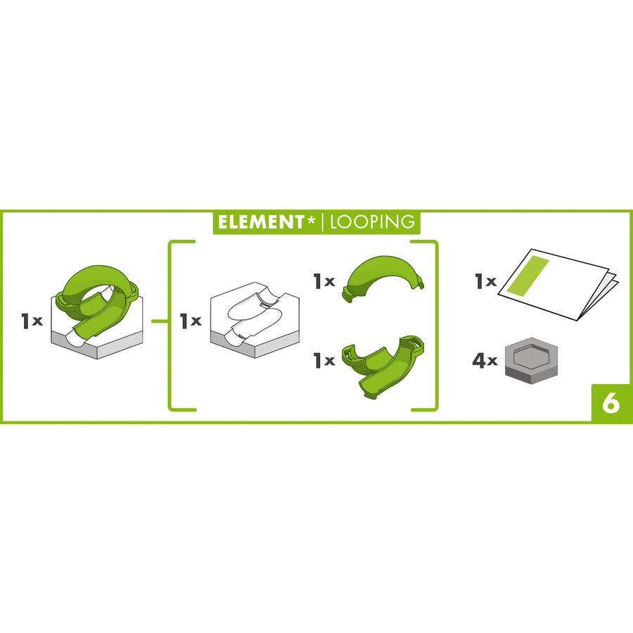 Dettagli del prodotto: Età: da 8 anni L'azione frenetica è garantita con l'elemento Looping di GraviTrax. L'elemento Looping capovolge il mondo delle palline per un breve momento. Le palline volano ad alta velocità attraverso il looping e sospendono per un attimo la gravità. Combinato con qualsiasi Starter Set GraviTrax, l'elemento Looping capovolge le biglie nella pista di marmo in questo modo