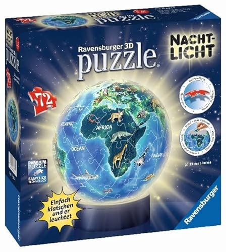 Composto da 72 pezzi di puzzle in plastica di alta qualità e 2 accessori, si crea un puzzle a sfera stabile, che funge da pratica luce notturna. Si illumina facilmente anche al buio grazie all'interruttore a battente