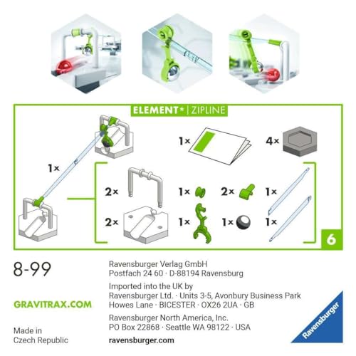 TYROLIANE: Un elemento per aumentare i suoi circuiti di sfere GraviTrax! Questa zip line permette alle sfere di attraversare notevoli dislivelli e porta sicuramente un effetto spettacolare ai suoi percorsi.