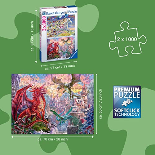 Ravensburger - Puzzle, Draghi e Unicorno, Esclusiva Amazon, 2 Puzzle da 1000 Pezzi, Puzzle Adulti, 80525