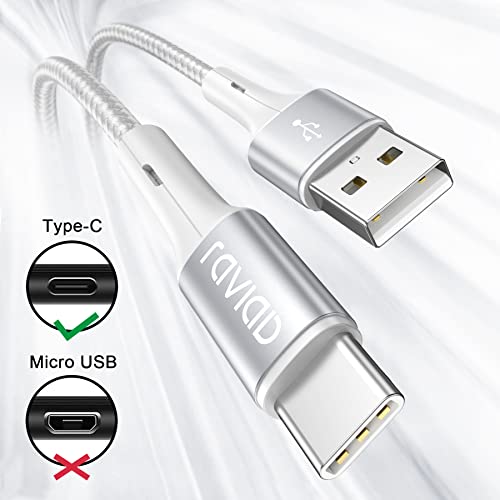 RAVIAD Cavo USB C, [2Pezzi, 1m] Nylon Intrecciato Cavo USB Tipo C di Ricarica Rapida e Trasmissione per Samsung Galaxy S20/S10/ S9/ S8 Plus, Huawei P40/P30/ P20/ Mate20, Sony Xperia XZ (Argento)