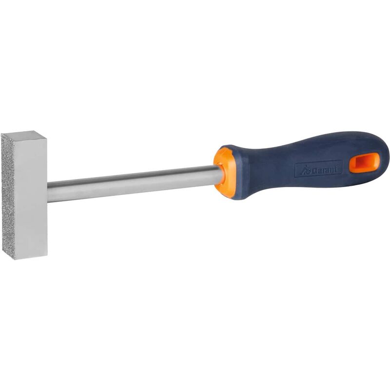 Ravvivamole manuale diamantato con rivestimento galvanico e impugnatura bicomponente ergonomica. Uso: Per ravvivatura e profilatura di mole abrasive in tessuto. Dati tecnici Tipo di prodotto Ravvivamole manuale Lunghezza complessiva, mm 270 Strumento di ravvivatura Rivestimento diamantato Larghezza segmento, mm 20 Lunghezza segmento, mm 70