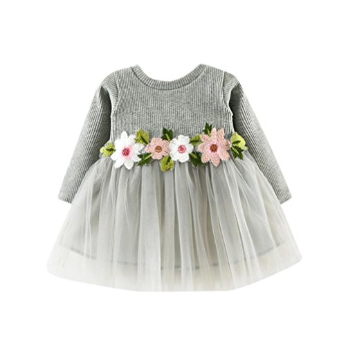 Rawdah Vestito dalla Principessa del Manicotto Lungo Tutu Floreale della neonata Sveglia del Bambino (18/24 Mesi, Grigio)