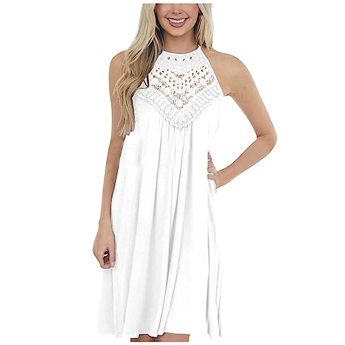 Rawdah_ Vestito da Sera Cerimonia Corti in Pizzo Donna Vestito Donna Bianco Estivo Casual Mini Abito Tubino Pizzo Vestiti Corta Eleganti Vestitini Senza Maniche da Cocktail (Bianca,L)