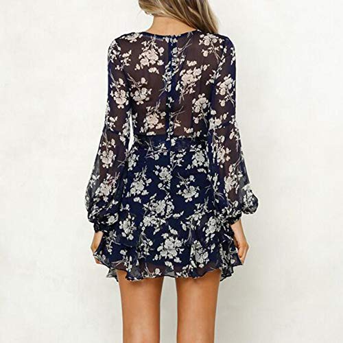 Rawdah_Donna Vestito Bianco Donna,Vestiti da Donna,Formale e Business,con Orlo a Palloncino,Stampa Ruffles Vestito Manica Lunga V Neck Sera Festa Mini Vestito (Marina Militare, L)