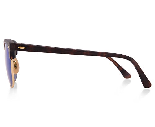 Montatura: sabbia, avana e oro. Lenti: grigio a specchio blu.
