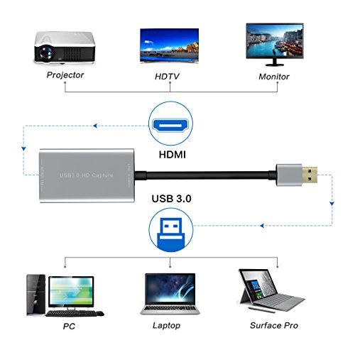 [acquisizione USB3.0 HD] Questo USB 3.0 capture si collega un computer tramite la porta USB 3.0 HDMI ad un HDTV, Monitor o proiettore con un cavo HDMI (cavo non incluso e venduti separatamente).