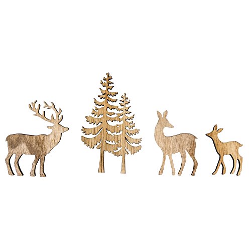 RAYHER 46112000 decorativi in legno albero + Hirsch, 4 - 8 cm, spessore 5 mm, Scatola in pvc 4stueck