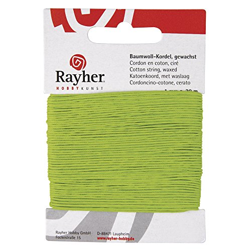 Rayher 5169185 - cordino in cotone cerato, 1 mm, carta SB 20 m, verde maggio