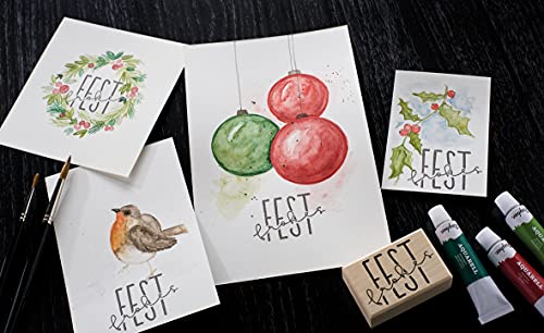 Rayher timbro “Frohes Fest" gomma su supporto in legno, 4x6cm, per decoro regali fai da te, biglietti d'auguri, etichette, decorazioni natalizie, 29227000