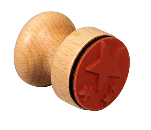 Rayher timbro rotondo stelline, gomma su supporto in legno, con impugnatura, diametro 3cm, per decori, regali fai da te, biglietti d'auguri, etichette, decorazioni natalizie, scrapbooking, 29230000