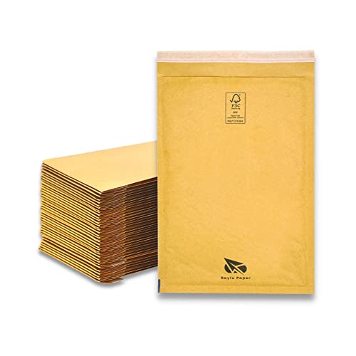 RAYLU PAPER - Confezione da 50 buste a bolle Kraft imbottite con chiusura autoadesiva, buste postali Kraft imbottite marroni (220 x 330 mm)