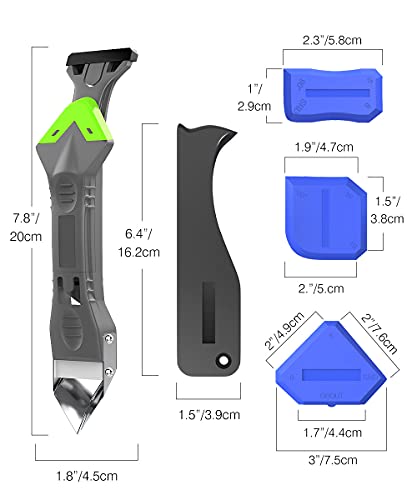 RASCHIETTO RIMUOVI SILICON - Il raschietto sigillante con il set di 5 accessori come le lame in silicone di diversa angolazione e la lamma in acciaio facilmente ricambiali sono ideale per rifinire e rimuovere il silicone la colla in modo facile e preciso.
