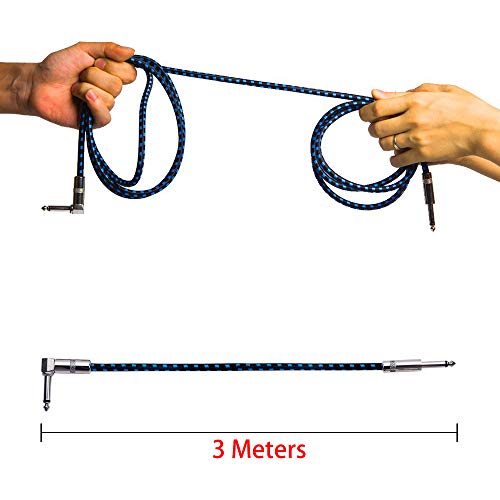 Rayzm Cavo Jack 1/4” da 3 Metri Noiseless per Chitarra/Basso, Connettore Maschio Mono e Cavo Avvolto in Tessuto Blu e Nero