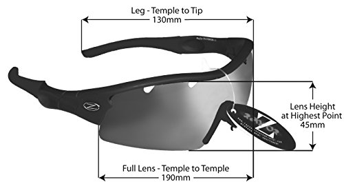 Rayzor, occhiali da sole sportivi modello “Wrap Cricket”, professionali, leggeri, UV400, con lente unica a specchio di colore blu, antiriflesso, montatura bianca, RI220BKSM-CR, Black (220)
