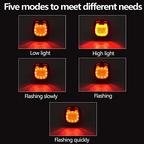 Cinque modalità di illuminazione: il fanale posteriore dispone di un interruttore one-touch con quattro diverse modalità di illuminazione a seconda delle preferenze. Include piena luminosità, mezza luminosità, lampeggiamento veloce, lampeggiamento e lampeggiamento lento.