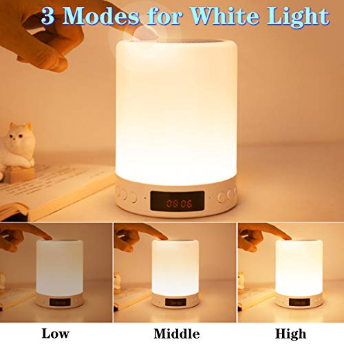RBNANA Lampada Altoparlante Bluetooth, Lampada da Comodino Touch, Orologio Digitale FM, Touch Control Lampada con Dimmerabile 7 Colore 3 Luminosità