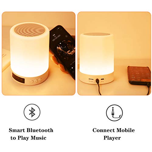 【5-in-1 Lampada da Comodino】√Altoparlante Bluetooth + Sveglia + Lampada LED con sensore tattile + Lettore MP3 + Chiamata a mani libere. Facile da collegare con tutti i dispositivi Bluetooth. Perfetto per sport, feste, cucina, campeggio e attività all'aperto.