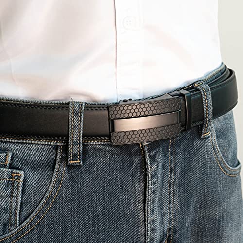 RBOCOTT Cintura Uomo,Cintura Automatica a Cricchetto per Uomini,Cintura in Pelle Nera,3.3cm più Largo(5-105cm)