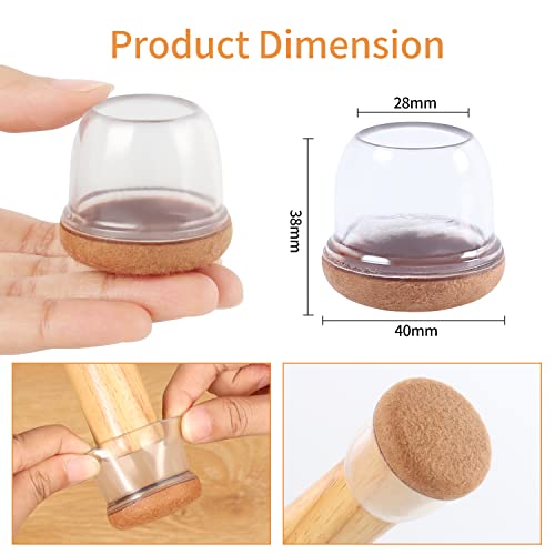 RCHYFEED 24 pezzi Coprigambe per Sedia in Silicone con Feltro, Proteggi Gambe per Mobili 14-36mm, Elastiche Protezione per Gambe Delle Sedie per Antigraffio, Feltrini per Sedie Chair Leg Protectors