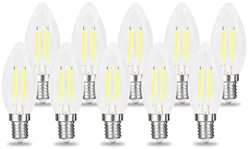 RClorBulb (confezione da 10) 4W E14 Lampadina a candela a filamento classico in vetro LED dimmerabile bianco freddo C35 AC 220V