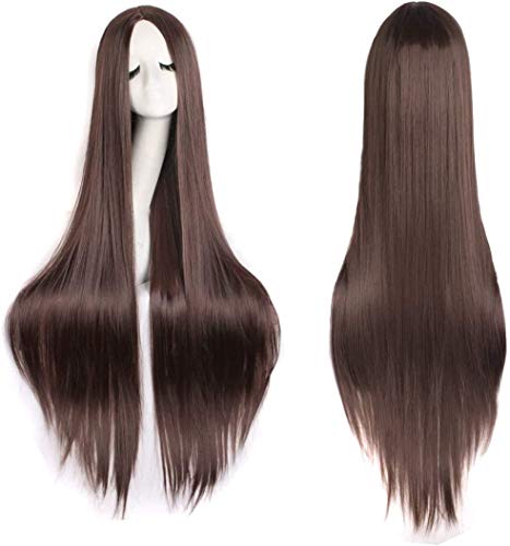 Rcrllya, Parrucca da donna per cosplay, capelli lisci e lunghi, resistenti al calore, lunghezza 100 cm, colore marrone scuro