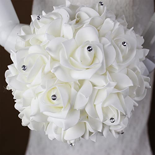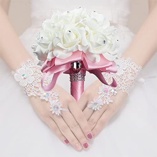 RDWESZOD Bouquet da sposa per matrimonio, sposa in seta, damigella d'onore, a mano, con nastri morbidi diamantati (rosa)