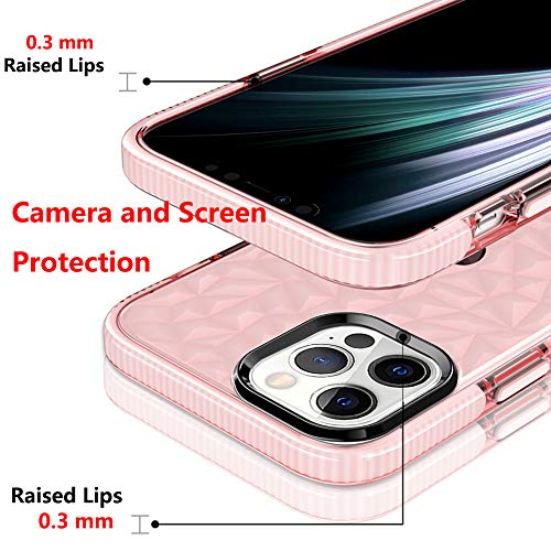 Rdyi6ba8 Cover per iPhone 12 Pro, Ultra Sottile Trasparente Morbido TPU Silicone Antiurto Protettiva Custodia, 3D Motivo a Diamante Design Antiurto Protettiva Case per iPhone 12 Pro - Rosa