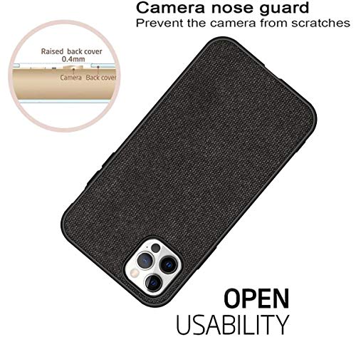 Rdyi6ba8 Cover Tessuto per iPhone 12/12 Pro, Ultra Sottile Leggero in Tela + Morbido TPU Silicone Paraurti Case per iPhone 12/12 Pro (Nero)