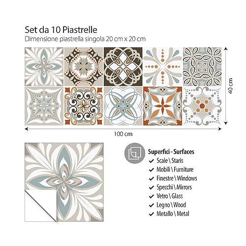 RE-COVERTILES - Adesivi per Piastrelle Bagno e Cucina 10 Pz 20x20 cm - PS00009 Decorazione murale in PVC impermeabile mattonelle mosaico stile cementine Azulejos