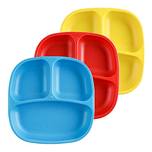 Re-Play 3 Pack Divided Plates - Primary Colours