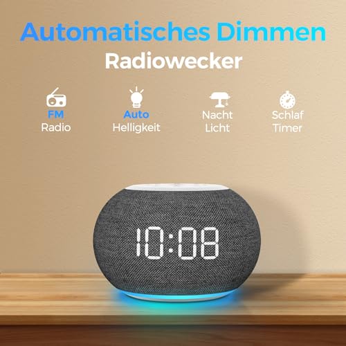 Reacher Radiosveglia Automatica Dimmerabile Per Camera Da Letto, Luce Notturna a 9 Colori, Dimmer 0-100%, 7 Suoni Di Sveglia, Radio FM, Timer Per il Sonno, Piccola Sveglia Per il Comodino