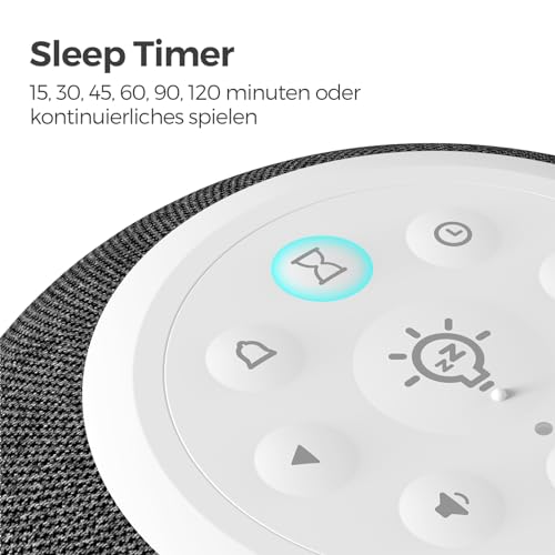 Radio FM e timer per il sonno: piccolo altoparlante, grande suono. Altoparlante surround migliorato per un suono forte e chiaro e 30 livelli precisi di volume regolabile. Impostare programmi per spegnere automaticamente la luce notturna/radio in base al proprio orario di sonno.
