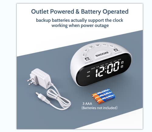 La doppia sveglia può essere programmata per il giorno della settimana, il fine settimana o 7 giorni secondo le tue esigenze. 5 suonerie sono opzionali (flauto / uccello / pianoforte / ronzio / campana) Allarme graduale crescente con volume regolabile (fino a 130DB) può svegliare la maggior parte dei dormiglioni. 9-min ripetizione fino a 7 volte. Assicurati di non dormire troppo