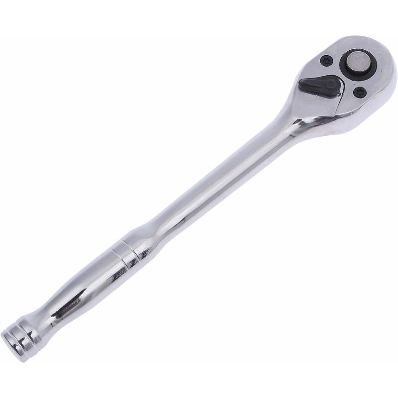 Il cricchetto a basso profilo presenta una testa a basso profilo per un migliore accesso in spazi ristretti. Profilo maniglia lucidato a specchio antiruggine e resistente all'olio. Costruzione in acciaio al cromo vanadio Testa a basso profilo meccanismo a cricchetto a 72 denti