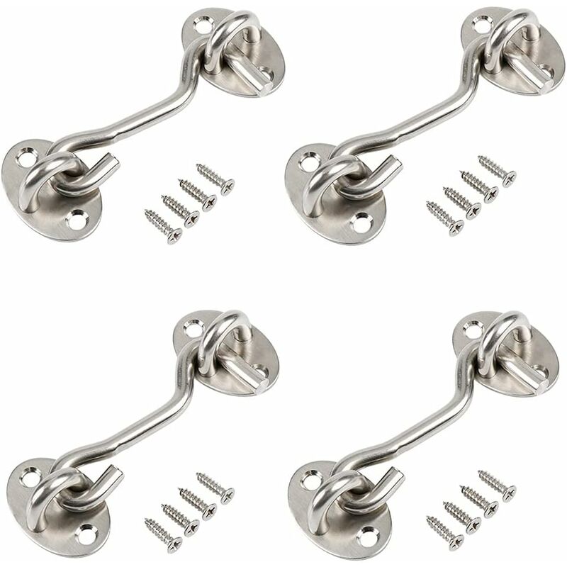 Specifiche: Materiale: acciaio inossidabile Dimensioni: Lunghezza: 10 / 3,93 pollici Spessore: 6 mm Distanza tra i fori: 2,7 / 1,06 pollici Colore: argento Contenuto della confezione: 4 ganci per cabina 4 occhielli 16 viti Fasi di installazione installazione: 1, eseguire i fori nella posizione di montaggio in base alla posizione del foro del gancio della finestra;