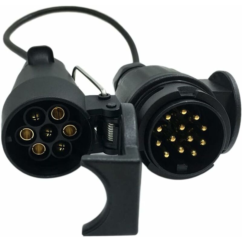 Specifiche: Tipo articolo: Spina elettrica e prese Nome articolo: adattatore da 7 a 13 pin Colore: nero Materiale: ABS + rame Tensione: 12 V Lunghezza cavo: 42 / Diametro filo: 7*0,5 mm / Diametro filo: 6,4 mm Dimensioni imballo: 15 x 10 x 8 / 6 x 4 x 3,2 pollici Peso imballo: 300 g / 10,6 once Contenuto della confezione: 1 * 7 spina del rimorchio a 13 pin Configurazione del cablaggio: 7 pin collegamenti di illuminazione - 12N funzione filo nero PIN 1 - Filo giallo (indicatore di direzione sinistra/H) PIN 2 - Filo blu (luce retronebbia) PIN 3 - Filo bianco (Ritorno a terra) PIN 4 - Cavo verde (indicatore di direzione DesH) PIN 5 - Cavo marrone (codone destro/H e n. luce targa) PIN 6 - Cavo rosso (luce stop) PIN 7 Cavo nero (n. luce di coda e targa sinistra/H) Collegamento luci a 13 pin - Funzione cavo Pin 1 - Filo giallo (indicatore sinistro) Pin 2 - Filo blu (fendinebbia) />Pin 3 - Filo bianco (Ritorno a terra) Pin 4 - Filo verde (indicatore destro) Pin 5 - Filo marrone (coda