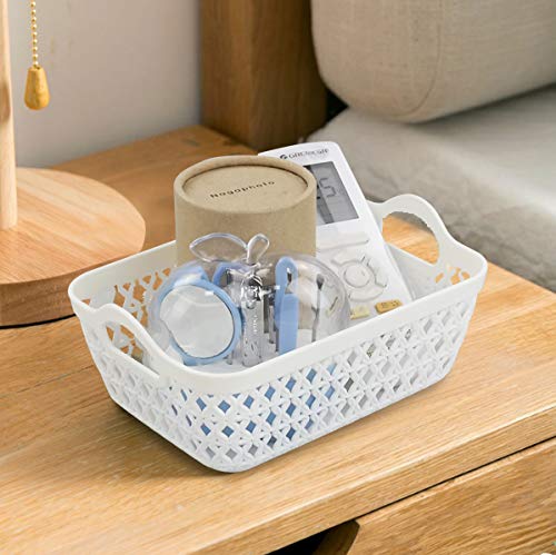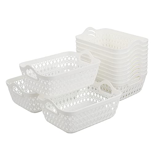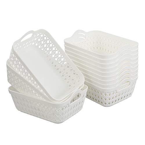 Readsky Cestini Portaoggetti in Plastica, Cestino Intrecciato in Plastica, Set di 12, Bianco