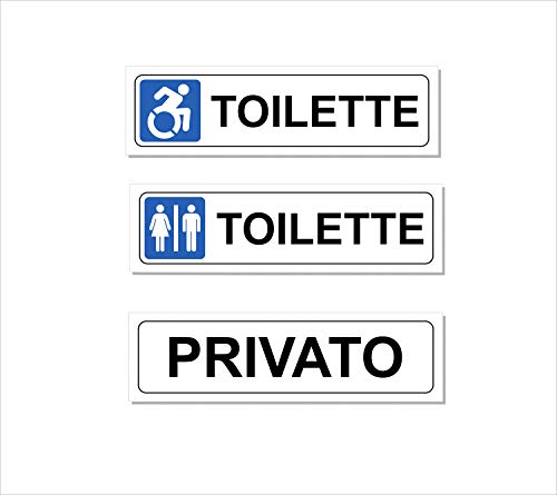 Readyprint Set 3 Adesivi Toilette - Disabili - Donna/Uomo - Privato Targhetta Adesiva, Impermeabile, Lavabile, per Bagni, Toilet, Mis. 21x6 cm -3 pz.