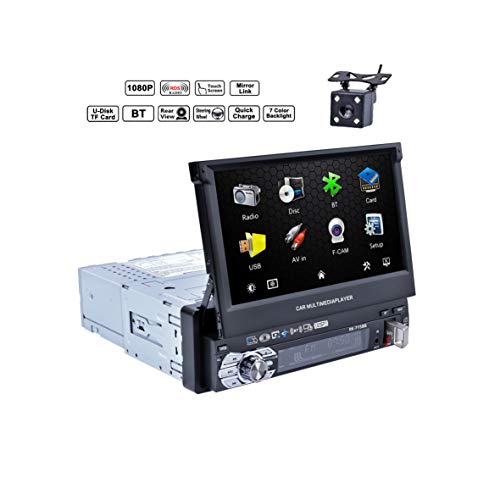Reakosound Lettore MP5, 7158B di 7 pollici, per auto, con funzione retrattile automatica, con telecamera per la retrovisione