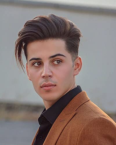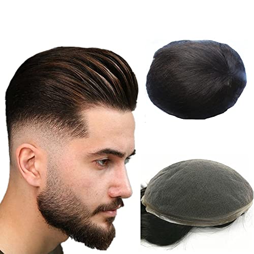 NLW Real Hairs Men's Toupee, 100% naturale sistema di sostituzione dei capelli umani densità media, traspirante francese pizzo parrucca pezzo 8 * 10 pollici (# 2 Deep Brown)