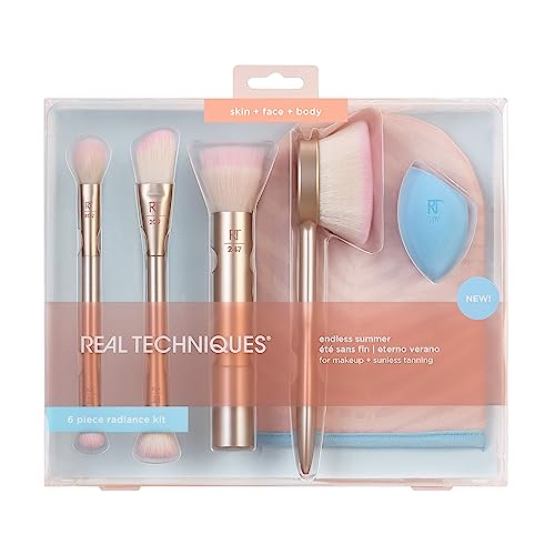 REAL TECHNIQUES Endless Summer - Kit di pennelli per il viso, per fondotinta e cipria, qualità premium, 6 pezzi, rosa